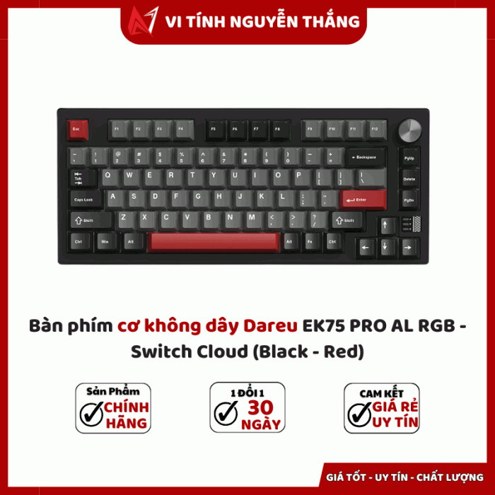 Bàn phím cơ không dây Dareu EK75 PRO AL RGB - Switch Cloud (Black - Red)