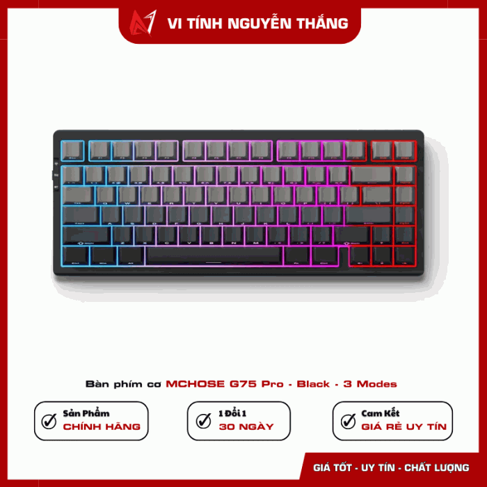 MCHOSE G75 Pro Black là mẫu bàn phím cơ được thiết kế dành cho người dùng yêu cầu cao về cảm giác gõ, độ hoàn thiện và khả năng tùy biến sâu. Với layout 75% gọn gàng, cấu trúc gasket mount cao cấp cùng kết nối ba chế độ, sản phẩm phù hợp cho cả môi trường làm việc chuyên nghiệp lẫn nhu cầu chơi game, giải trí cường độ cao.