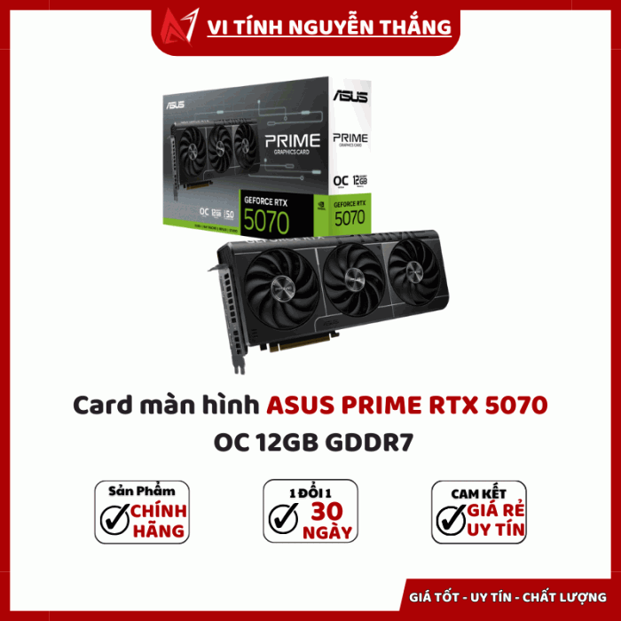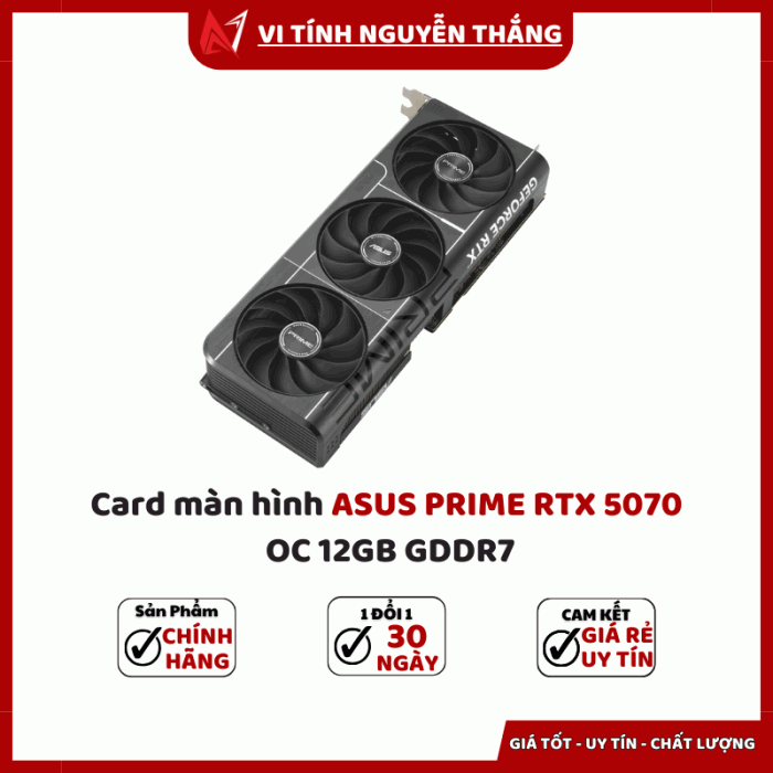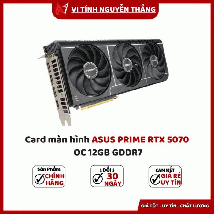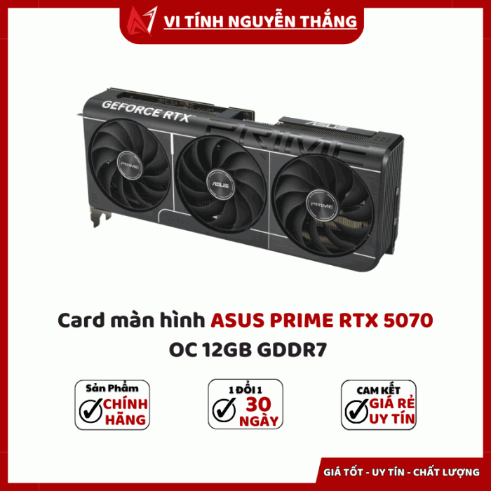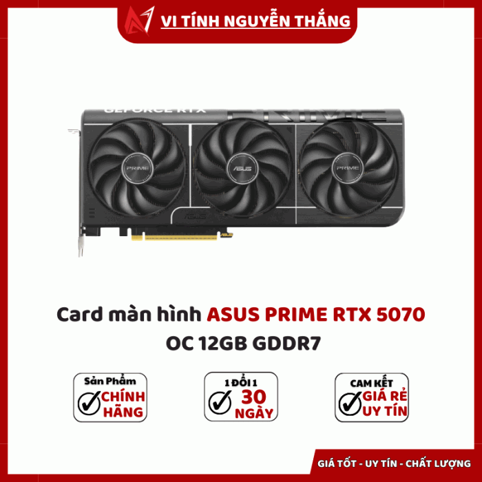 Card màn hình ASUS PRIME RTX 5070 OC 12GB GDDR7 là một trong những lựa chọn đáng giá nhất trong phân khúc cao cấp hiện nay. Sở hữu hiệu năng vượt trội, hỗ trợ công nghệ hình ảnh tiên tiến, hệ thống tản nhiệt thông minh và độ bền bỉ đến từ thương hiệu ASUS, sản phẩm không chỉ phục vụ tốt cho gaming mà còn là công cụ mạnh mẽ cho các công việc đồ họa, sáng tạo nội dung và AI.