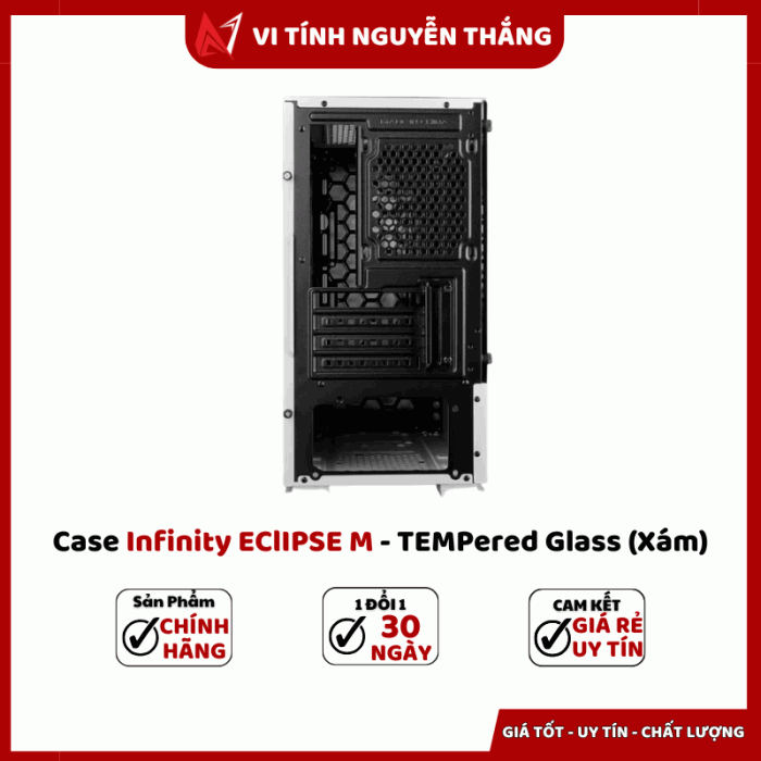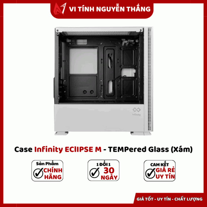 Infinity Eclipse M – Tempered Glass (Xám) không chỉ là một chiếc case, mà là một phần của phong cách cá nhân. Với thiết kế tinh tế, chất liệu bền bỉ, khả năng tản nhiệt ấn tượng và hỗ trợ linh kiện linh hoạt, sản phẩm là lựa chọn lý tưởng cho game thủ, designer và người dùng muốn xây dựng dàn máy gọn – đẹp – mát – bền.