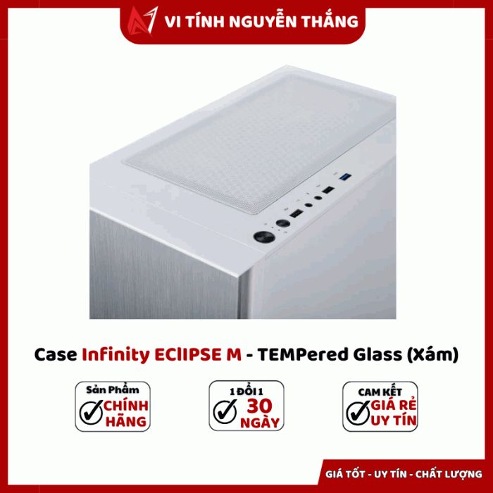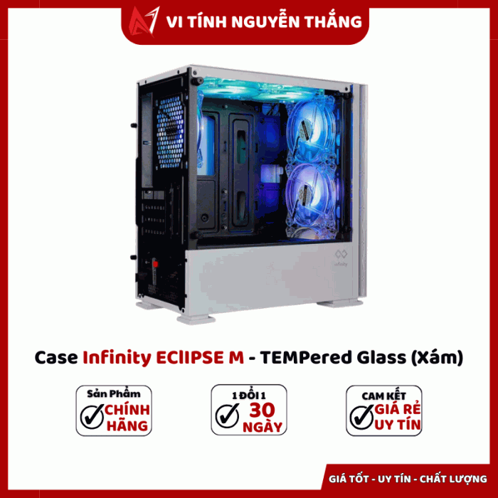 Case Infinity Eclipse M – Tempered Glass (Xám) là lựa chọn hoàn hảo cho người dùng yêu thích sự gọn gàng, hiện đại và thẩm mỹ cao. Với thiết kế khung nhôm cao cấp kết hợp kính cường lực hai bên, sản phẩm không chỉ mang lại vẻ đẹp sang trọng mà còn đảm bảo độ bền bỉ vượt trội. Đây là mẫu case Mid Tower nhỏ gọn, phù hợp cho cả PC gaming tầm trung và máy làm việc hiệu năng cao, giúp người dùng dễ dàng tùy biến và trình bày bộ máy một cách chuyên nghiệp.