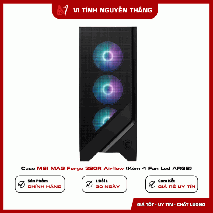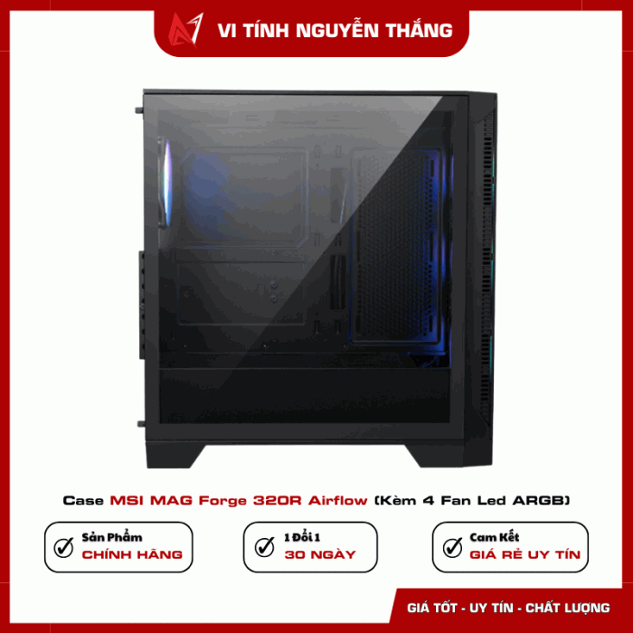 Case MSI MAG Forge 320R Airflow (kèm 4 fan LED ARGB) là lựa chọn cân bằng giữa thiết kế, khả năng tản nhiệt và chi phí. Với airflow tối ưu, hỗ trợ linh kiện kích thước lớn và hệ thống quạt sẵn có, sản phẩm đáp ứng tốt nhu cầu build PC gaming và làm việc lâu dài.