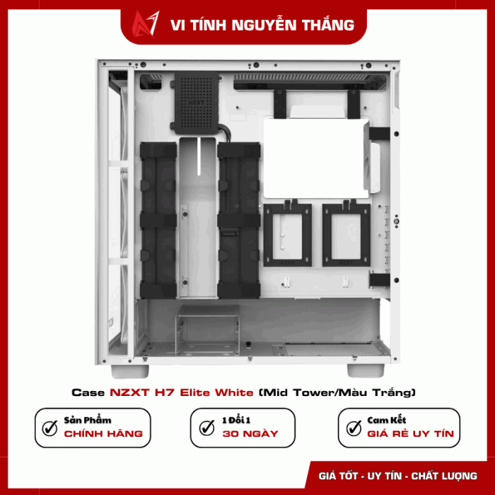 NZXT H7 Elite White là lựa chọn hoàn hảo cho những ai muốn sở hữu một case mid tower cao cấp, đẹp sang, tản nhiệt mạnh và dễ build. Với mặt kính cường lực full-size, không gian rộng rãi, hỗ trợ radiator 360mm và fan RGB tích hợp, case giúp setup PC trở nên chuyên nghiệp, bền bỉ và nổi bật ngay cả trong phòng gaming hoặc studio. Đây là case lý tưởng cho game thủ, streamer, dân dựng hình đồ họa hoặc bất kỳ ai muốn PC vừa đẹp vừa hiệu năng cao.