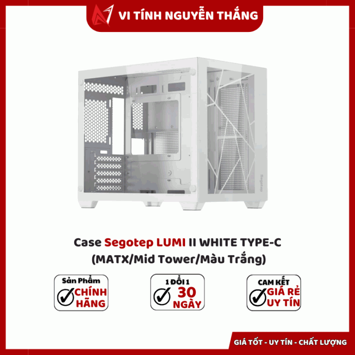 Case Segotep LUMI II WHITE TYPE-C là một trong những sản phẩm nổi bật trong dòng vỏ máy tính MATX/Mid Tower đến từ thương hiệu Segotep, mang đến sự kết hợp hoàn hảo giữa thiết kế tinh tế, tính năng vượt trội và khả năng tản nhiệt hiệu quả. Với màu trắng trang nhã và cổng kết nối Type-C hiện đại, LUMI II WHITE không chỉ là vỏ case máy tính mà còn là một điểm nhấn thẩm mỹ cho không gian làm việc hoặc chơi game của bạn.
