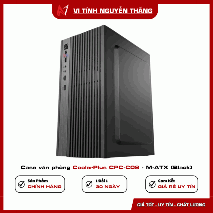 CoolerPlus CPC-C08 M-ATX (Black) là lựa chọn tuyệt vời cho những ai đang tìm kiếm một vỏ case máy tính văn phòng bền, gọn, dễ lắp và tiết kiệm chi phí. Với thiết kế đơn giản, khả năng hỗ trợ phần cứng tốt và mức giá hợp lý, sản phẩm này xứng đáng nằm trong danh sách ưu tiên khi lắp đặt dàn máy cho văn phòng hoặc sử dụng cá nhân.