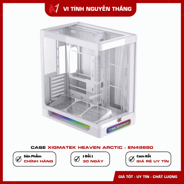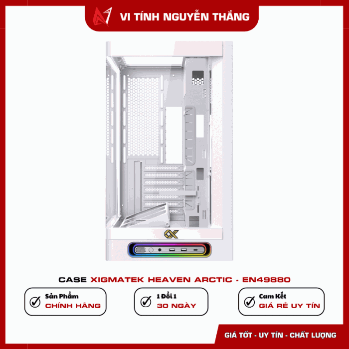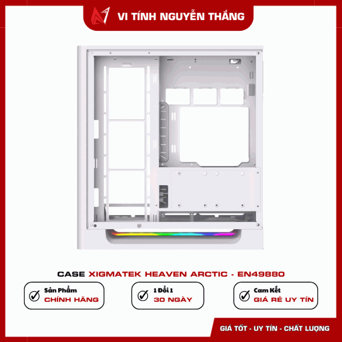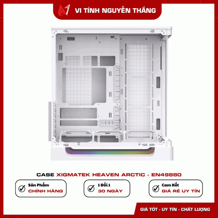Case Xigmatek HEAVEN ARCTIC - EN49880 là lựa chọn lý tưởng cho người dùng cần một bộ vỏ máy vừa đẹp về thẩm mỹ vừa mạnh về hiệu năng. Với thiết kế màu trắng hiện đại, không gian rộng rãi và khả năng tản nhiệt linh hoạt, sản phẩm đáp ứng tốt nhu cầu build PC gaming hoặc làm việc cao cấp.
