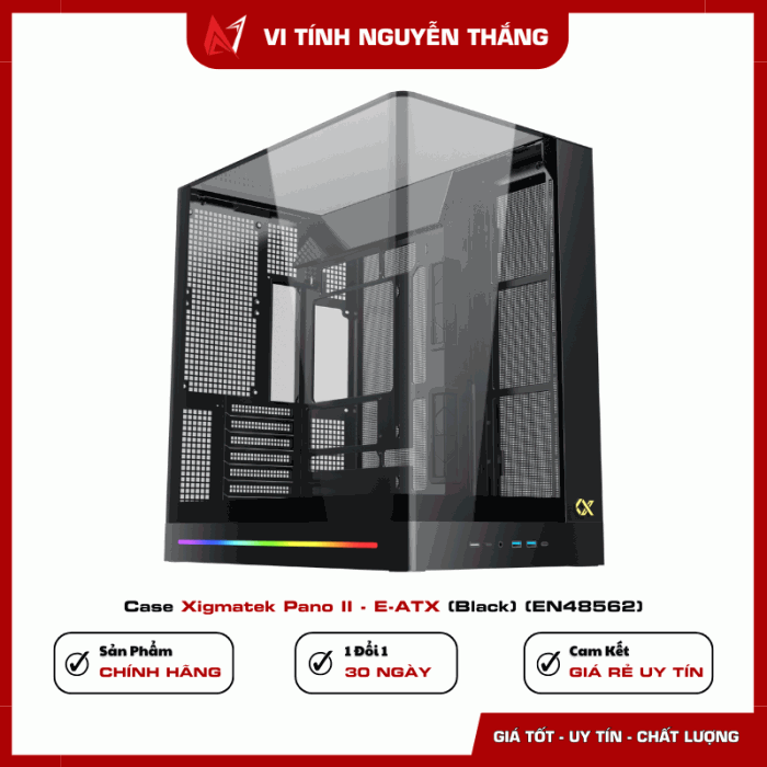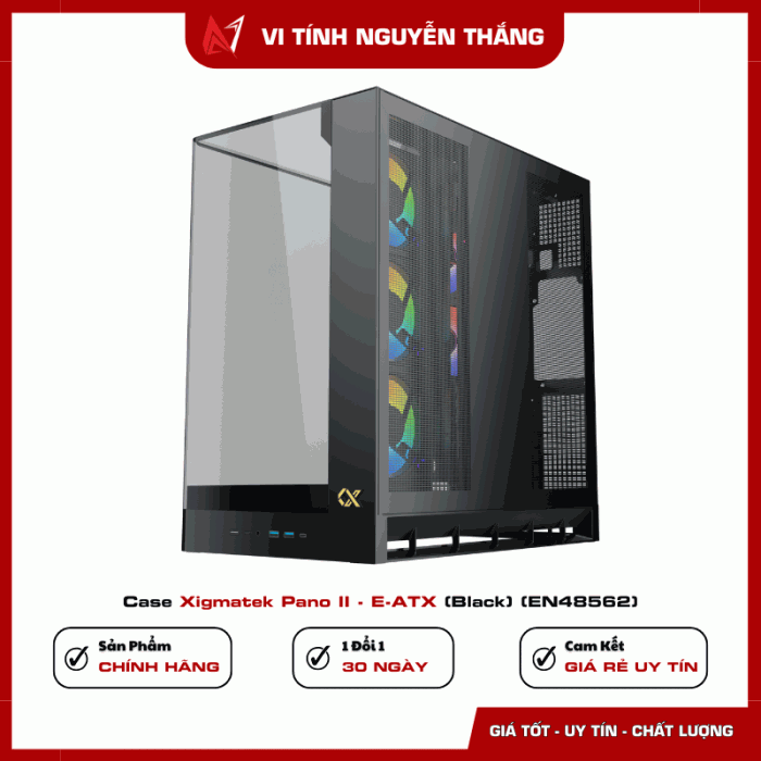 Case Xigmatek Pano II – E-ATX (Black) (EN48562) là lựa chọn phù hợp cho người dùng cần một thùng máy không gian lớn, hỗ trợ linh kiện cao cấp, back plug và GPU dọc. Thiết kế chắc chắn, khả năng mở rộng tốt và hỗ trợ tản nhiệt linh hoạt giúp sản phẩm đáp ứng tốt cả nhu cầu gaming lẫn workstation.