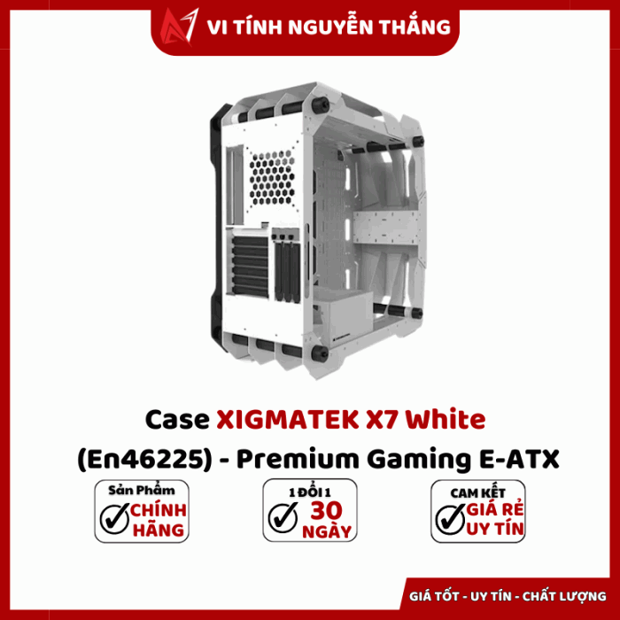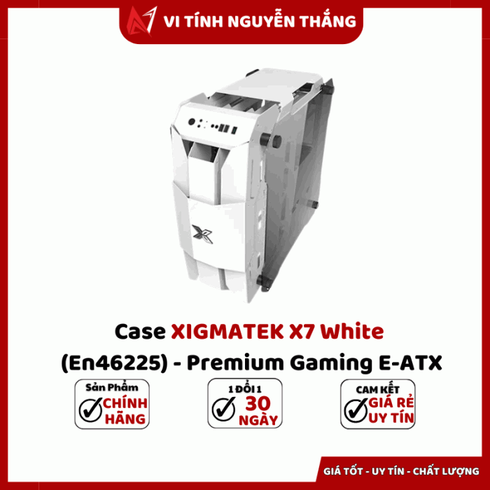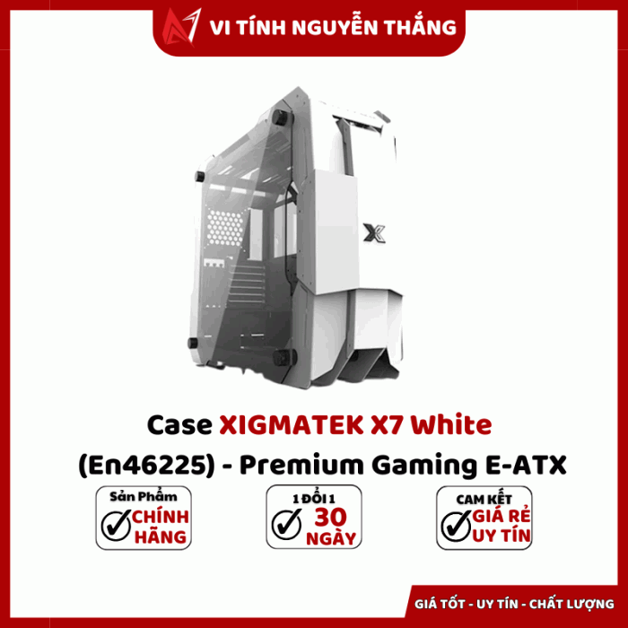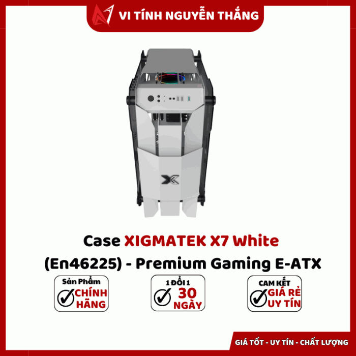 Case XIGMATEK X7 White (EN46225) là mẫu vỏ máy tính gaming cao cấp được thiết kế dành cho người dùng yêu cầu cả thẩm mỹ lẫn hiệu năng. Với lớp sơn trắng sang trọng, khung thép chắc chắn và kính cường lực hai bên, X7 White cho góc nhìn toàn cảnh hệ thống cùng khả năng trình diễn đèn RGB cực ấn tượng. Sản phẩm hướng đến người build máy chuyên nghiệp, game thủ và creator cần không gian lắp đặt lớn, hỗ trợ mainboard E-ATX và hệ thống tản nhiệt nước toàn diện, đảm bảo dễ tùy biến, nâng cấp và vận hành ổn định trong thời gian dài.