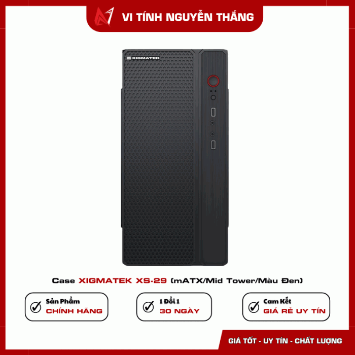 Case XIGMATEK XS-29 (mATX / Mid Tower / Màu Đen) là lựa chọn phù hợp cho người dùng cần một thùng máy nhỏ gọn, dễ lắp đặt, chi phí hợp lý. Với khả năng hỗ trợ mainboard mATX, hệ thống quạt cơ bản và chất liệu bền bỉ, sản phẩm đáp ứng tốt nhu cầu build PC văn phòng hoặc sử dụng gia đình.
