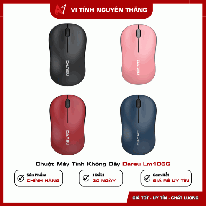 Chuột máy tính không dây Dareu LM106G là giải pháp thực tế cho nhu cầu sử dụng hằng ngày nhờ thiết kế nhẹ, kết nối ổn định và thao tác đơn giản. Sản phẩm đáp ứng tốt các tác vụ văn phòng, học tập với cảm biến 1200 DPI vừa đủ, dễ làm quen và không đòi hỏi cài đặt phức tạp. Nếu bạn đang tìm một mẫu chuột không dây gọn nhẹ, dễ dùng và bền bỉ cho công việc thường ngày, Dareu LM106G là lựa chọn hợp lý trong phân khúc phổ thông.
