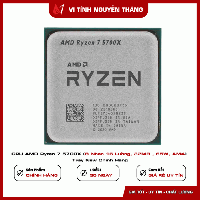 CPU AMD Ryzen 7 5700X là một trong những bộ vi xử lý đáng lựa chọn trong nền tảng AM4 nhờ hiệu năng mạnh mẽ, khả năng xử lý đa nhiệm tốt và mức tiêu thụ điện năng hợp lý. Với 8 nhân 16 luồng, xung boost lên đến 4.6GHz cùng bộ nhớ đệm 32MB, CPU mang lại hiệu suất ổn định cho cả gaming và công việc chuyên nghiệp.