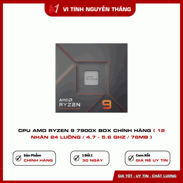 CPU AMD Ryzen 9 7900X 12 Nhân 24 Luồng – Hiệu Năng Cao Chính Hãng