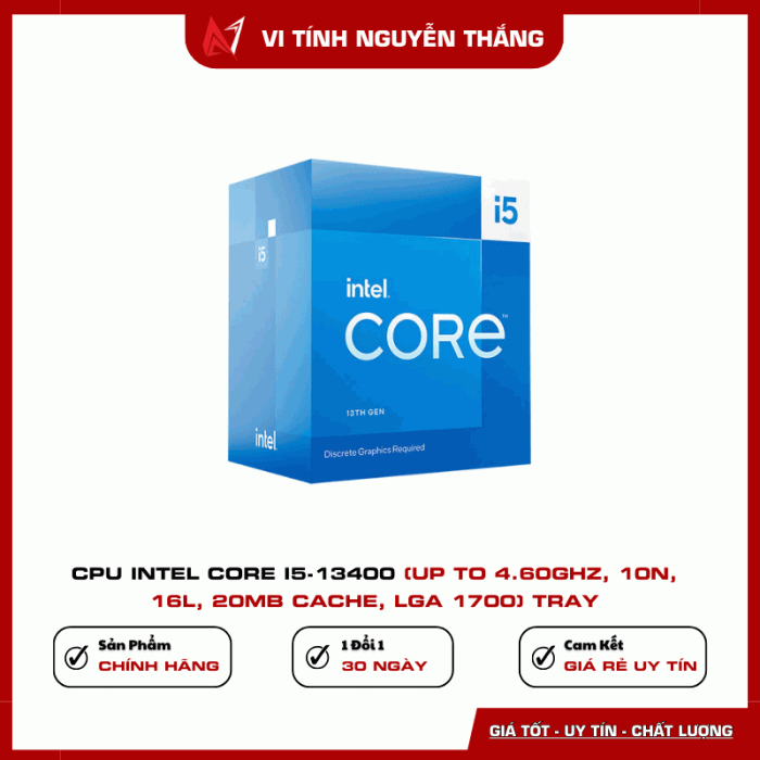 CPU Intel Core i5-13400 (Tray) là lựa chọn tối ưu cho người dùng cần hiệu năng mạnh, ổn định và khả năng nâng cấp linh hoạt cho PC thế hệ mới.
