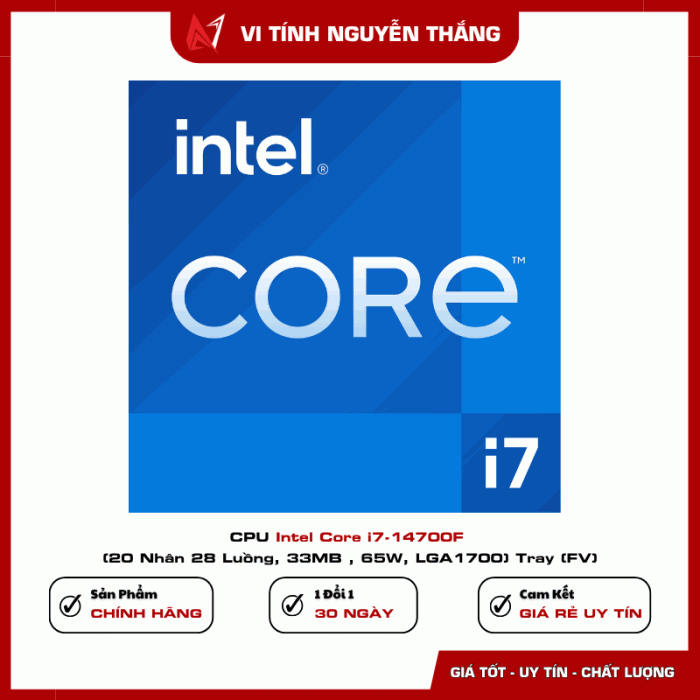 CPU Intel Core i7-14700F là lựa chọn lý tưởng cho người dùng cần hiệu năng mạnh mẽ để chơi game, làm việc đồ họa hoặc xử lý đa nhiệm. Với 20 nhân 28 luồng, xung nhịp cao và hỗ trợ công nghệ mới, sản phẩm mang lại hiệu suất ổn định và khả năng nâng cấp lâu dài.