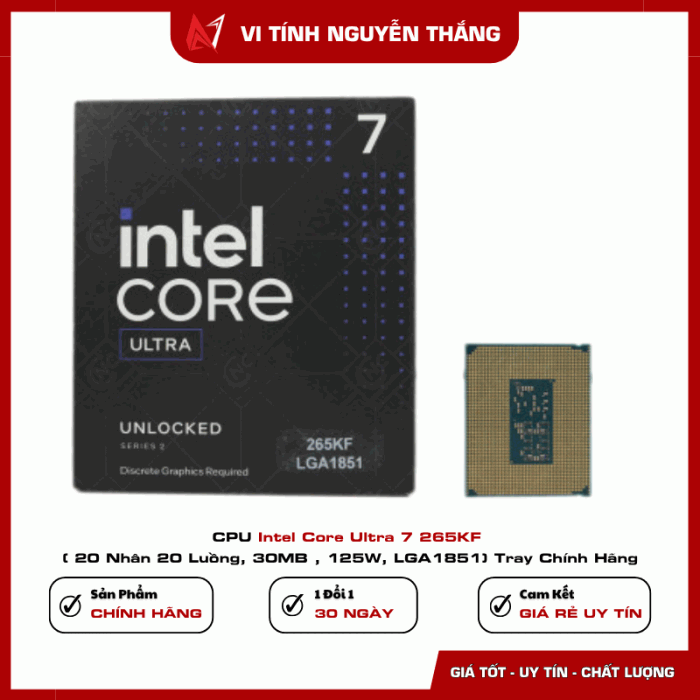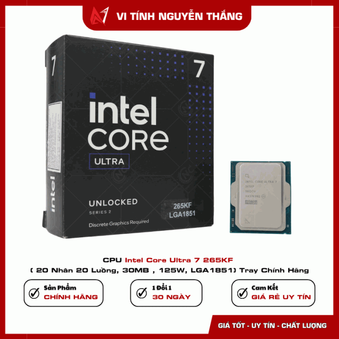 CPU Intel Core Ultra 7 265KF là lựa chọn phù hợp cho người dùng cần hiệu năng cao, khả năng đa nhiệm mạnh và nền tảng công nghệ mới. Với 20 nhân, xung nhịp cao và hỗ trợ DDR5, sản phẩm đáp ứng tốt cả nhu cầu gaming lẫn công việc chuyên sâu.