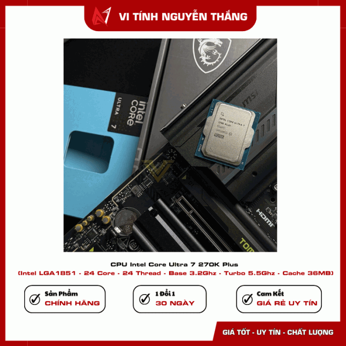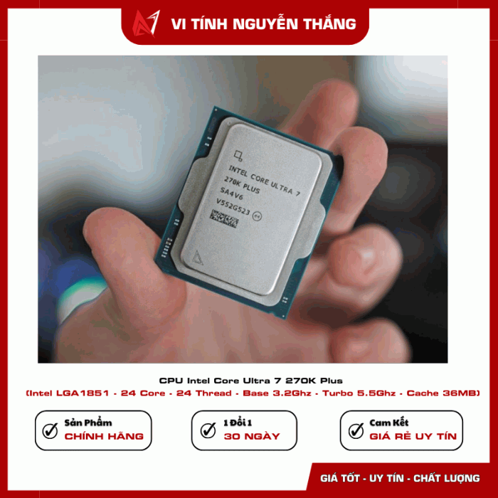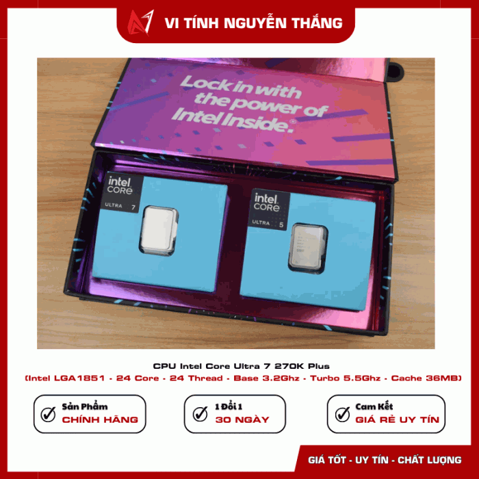Intel Core Ultra 7 270K Plus là bộ vi xử lý thuộc thế hệ CPU mới của Intel, được thiết kế nhằm mang lại hiệu năng cao cho các hệ thống máy tính gaming, làm việc và sáng tạo nội dung. Với kiến trúc hiện đại cùng số lượng nhân lớn, sản phẩm có thể xử lý tốt các tác vụ nặng như chơi game, dựng video, lập trình hoặc làm việc đa nhiệm.