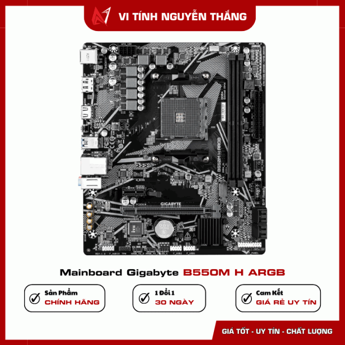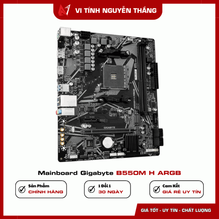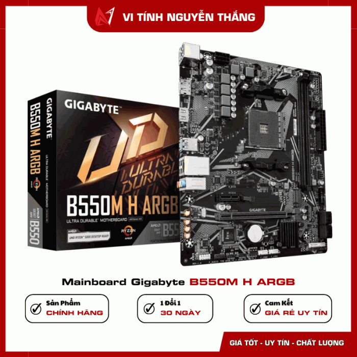 Gigabyte B550M H ARGB là bo mạch chủ Micro ATX được thiết kế dành cho nền tảng AMD Ryzen, mang lại hiệu năng ổn định, khả năng nâng cấp linh hoạt và hệ thống kết nối đầy đủ cho người dùng phổ thông, gaming hoặc làm việc.
