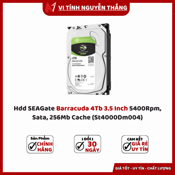 Trong thời đại dữ liệu ngày càng nhiều và yêu cầu lưu trữ dung lượng lớn trở nên phổ biến, ổ cứng HDD truyền thống vẫn giữ vai trò quan trọng nhờ giá thành hợp lý và khả năng lưu trữ khủng. Seagate Barracuda 4TB 3.5 Inch (ST4000DM004) là dòng ổ cứng được thiết kế để đáp ứng nhu cầu lưu trữ đa dạng, từ máy tính cá nhân, máy bàn văn phòng cho đến trung tâm dữ liệu nhỏ.