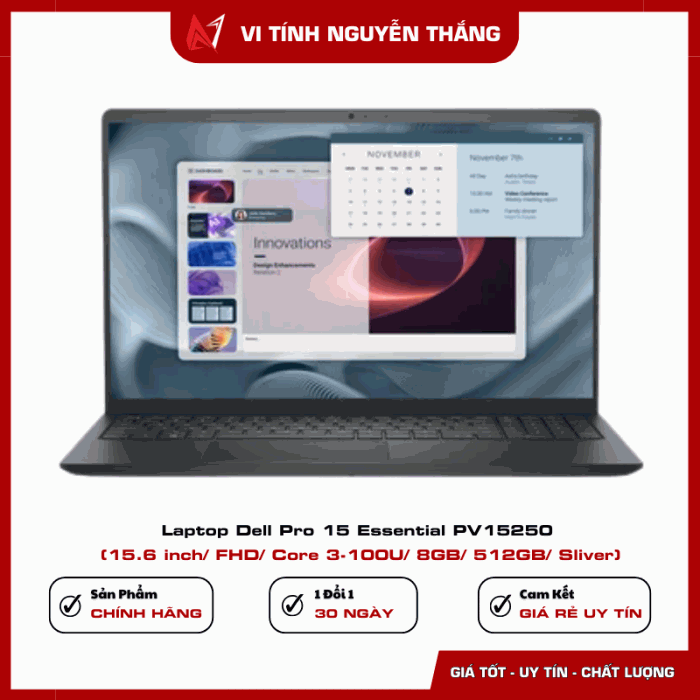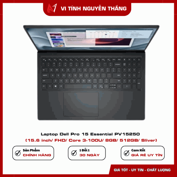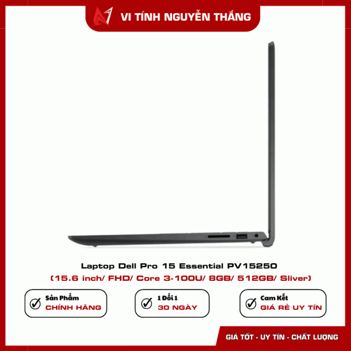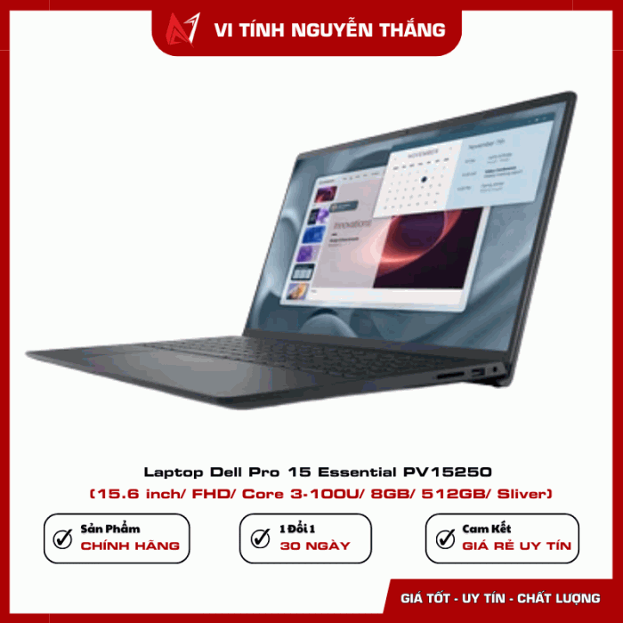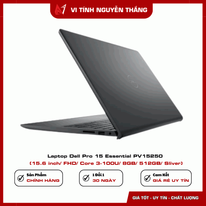 Laptop Dell Pro 15 Essential PV15250 là lựa chọn phù hợp cho người dùng cần một thiết bị làm việc ổn định, bền bỉ và hiệu quả. Với bộ xử lý Intel Core 3-100U, RAM DDR5 8GB, ổ cứng SSD 512GB cùng màn hình 15.6 inch Full HD, sản phẩm đáp ứng tốt các nhu cầu học tập, làm việc văn phòng và giải trí cơ bản.