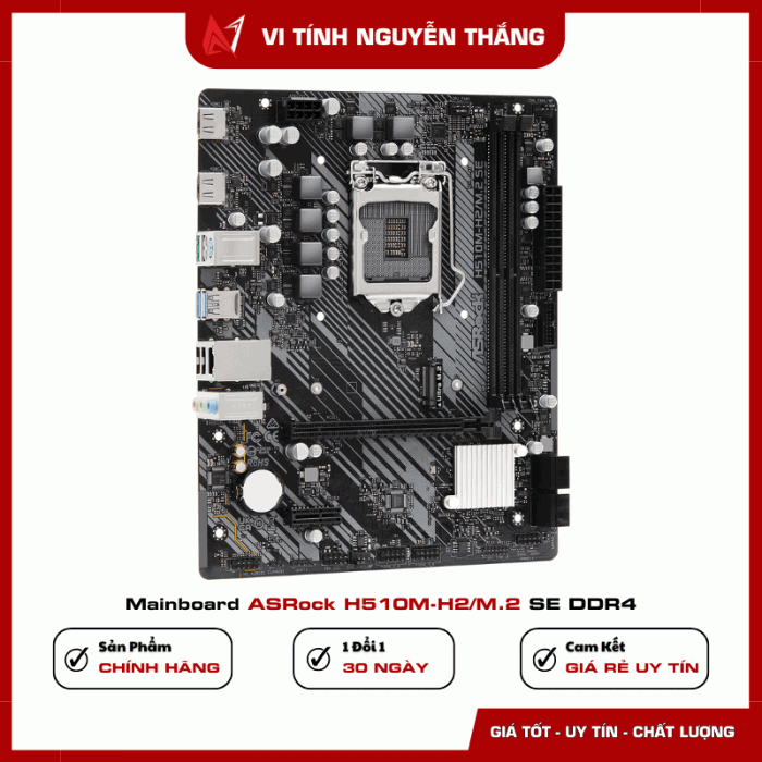 Mainboard ASRock H510M-H2/M.2 SE DDR4 là bo mạch chủ phổ thông ổn định, phù hợp cho các cấu hình PC văn phòng, học tập và giải trí nhẹ sử dụng CPU Intel thế hệ 10 & 11. Với thiết kế Micro‑ATX gọn gàng, hỗ trợ RAM DDR4, khe M.2 tốc độ cao cùng hệ thống cổng kết nối đầy đủ, đây là lựa chọn tối ưu về hiệu năng và chi phí.