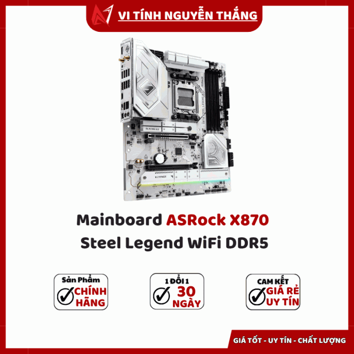 Khi nói đến bo mạch chủ dành cho game thủ và người dùng hiệu năng cao, ASRock Steel Legend luôn là một trong những dòng sản phẩm được ưa chuộng nhờ sự cân bằng giữa hiệu năng, độ bền và thiết kế hiện đại. Với ASRock X870 Steel Legend WiFi DDR5, người dùng sẽ có trong tay một mainboard thế hệ mới, hỗ trợ DDR5 tốc độ cao, kết nối WiFi 7 hiện đại, cùng nhiều tính năng tối ưu cho cả gaming lẫn làm việc chuyên nghiệp.