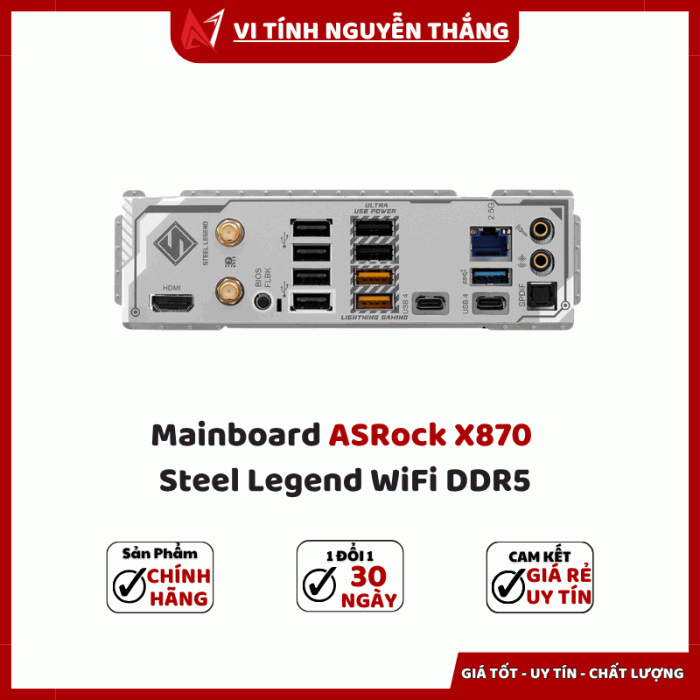 Mainboard ASRock X870 Steel Legend WiFi DDR5 là một bo mạch chủ toàn diện, mang đến sự cân bằng giữa hiệu năng mạnh mẽ, kết nối hiện đại và thiết kế bền bỉ. Với chipset X870, hỗ trợ DDR5, PCIe 5.0, WiFi 7, cùng hệ thống tản nhiệt tối ưu, sản phẩm này sẽ là lựa chọn đáng giá cho mọi game thủ và người dùng chuyên nghiệp.