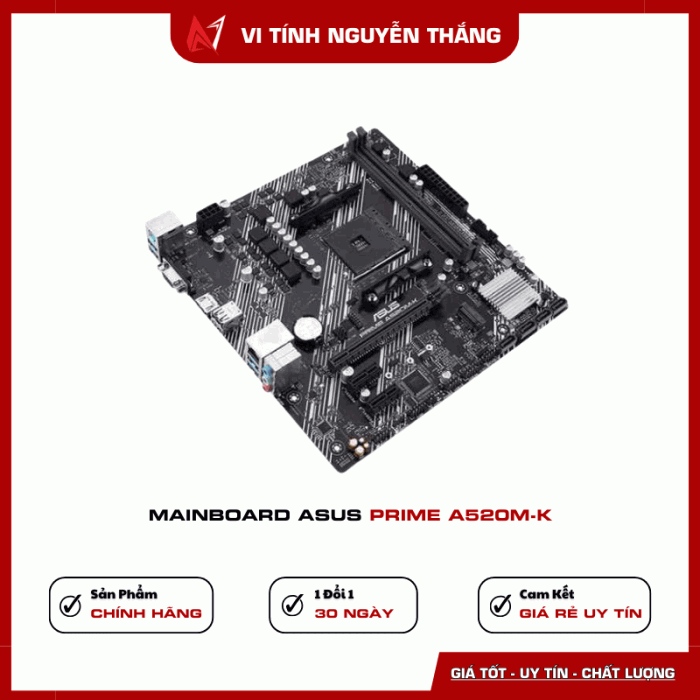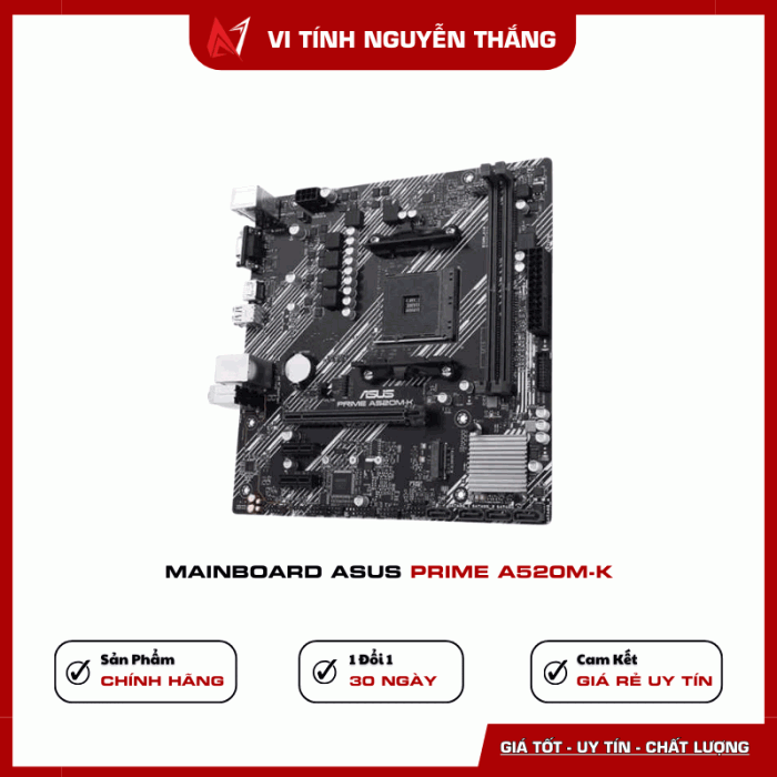 Mainboard ASUS PRIME A520M-K là lựa chọn lý tưởng để xây dựng cấu hình PC AMD Ryzen ổn định, giá tốt, phù hợp cho học tập, văn phòng và giải trí.