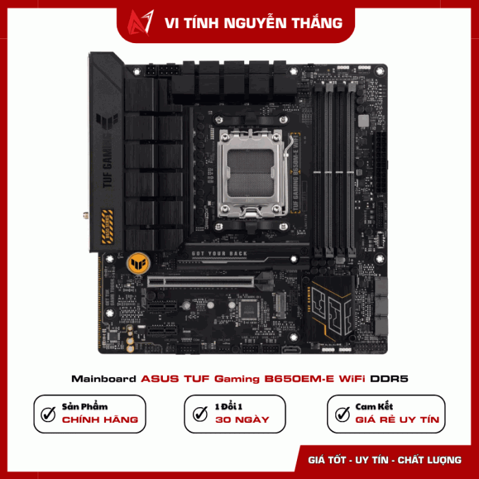 Trong kỷ nguyên mới của các bộ vi xử lý AMD Ryzen™, việc sở hữu một nền tảng ổn định và mạnh mẽ là ưu tiên hàng đầu của mọi game thủ. Mainboard ASUS TUF GAMING B650M-E WIFI xuất hiện như một "chiến binh" thực thụ trong phân khúc mATX. Kết hợp giữa độ bền chuẩn quân đội, giải pháp năng lượng nâng cấp và khả năng làm mát toàn diện, đây là sự lựa chọn lý tưởng cho những dàn máy chuyên nghiệp sử dụng socket AM5.