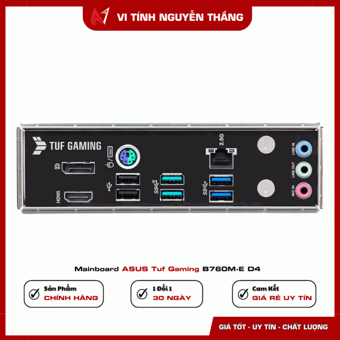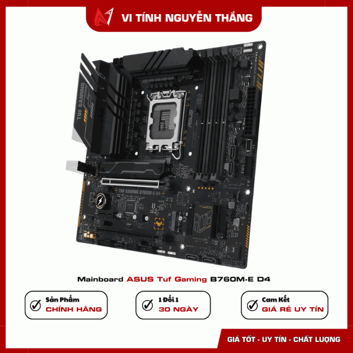 ASUS TUF Gaming B760M-E D4 là lựa chọn tối ưu cho game thủ, người làm việc văn phòng và sáng tạo nội dung cần một main bền bỉ, hiệu năng tốt và giá phải chăng. Với thiết kế chuẩn quân đội, hỗ trợ PCIe 5.0, 2 khe M.2 tốc độ cao và khả năng tương thích rộng, chiếc mainboard này mang đến một cấu hình mạnh mẽ – ổn định – tiết kiệm, phù hợp để build PC gaming hoặc workstation trong tầm giá dưới 4 triệu.