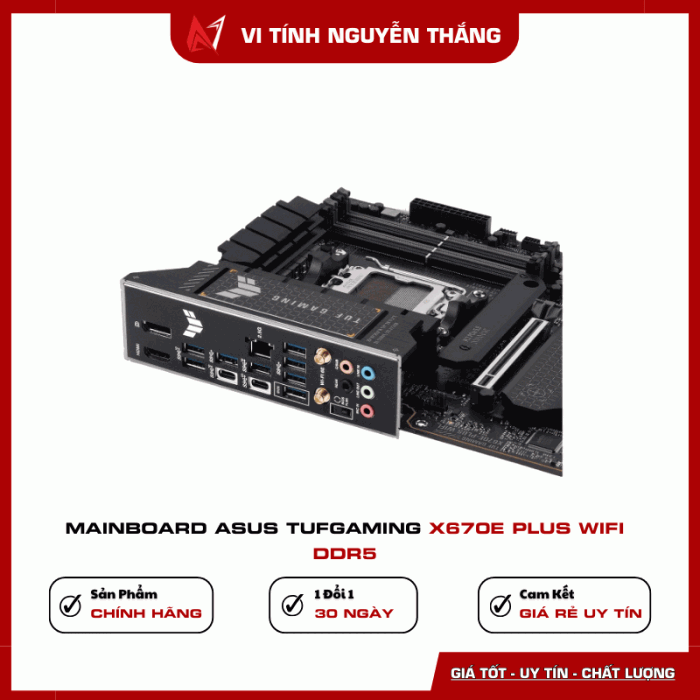 Mainboard ASUS TUF Gaming X670E-PLUS WIFI DDR5 là lựa chọn lý tưởng cho game thủ và người dùng chuyên nghiệp đang tìm kiếm bo mạch chủ cao cấp, hỗ trợ công nghệ mới nhất, hiệu năng mạnh mẽ và độ bền vượt trội cho hệ thống PC hiện đại.