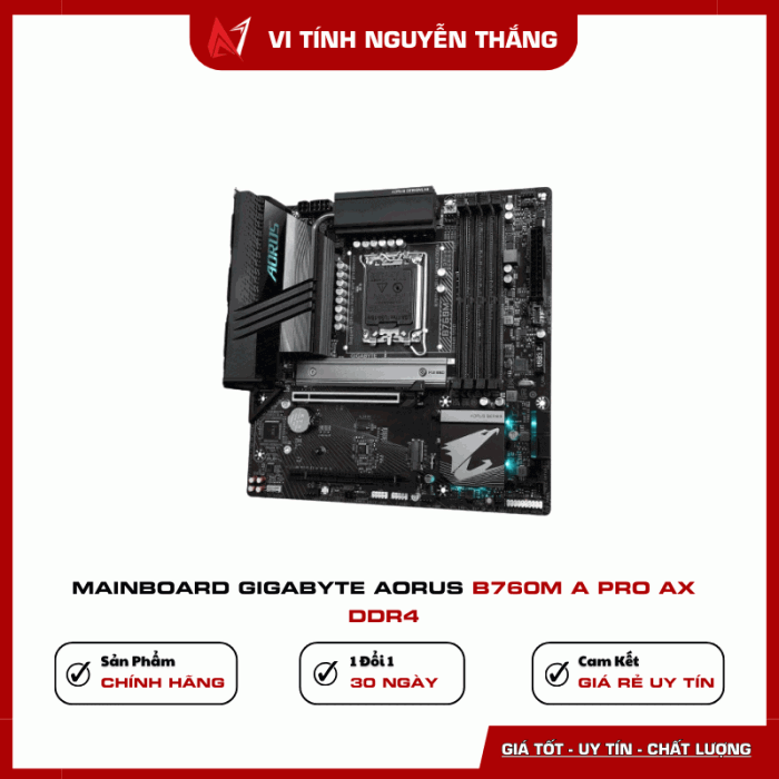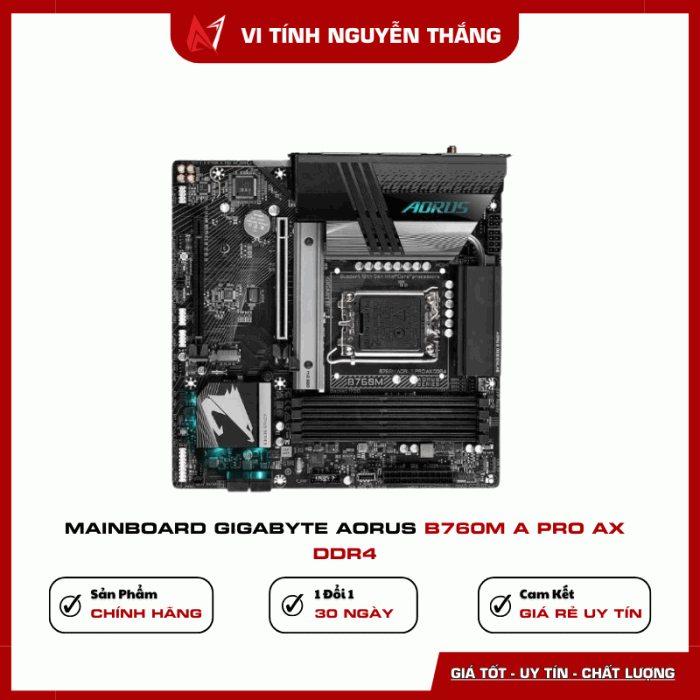 Mainboard Gigabyte AORUS B760M A PRO AX DDR4 là lựa chọn lý tưởng cho người dùng cần hiệu năng ổn định, kết nối hiện đại và độ bền cao. Phù hợp cho game thủ, dân đồ họa và người dùng chuyên nghiệp.
