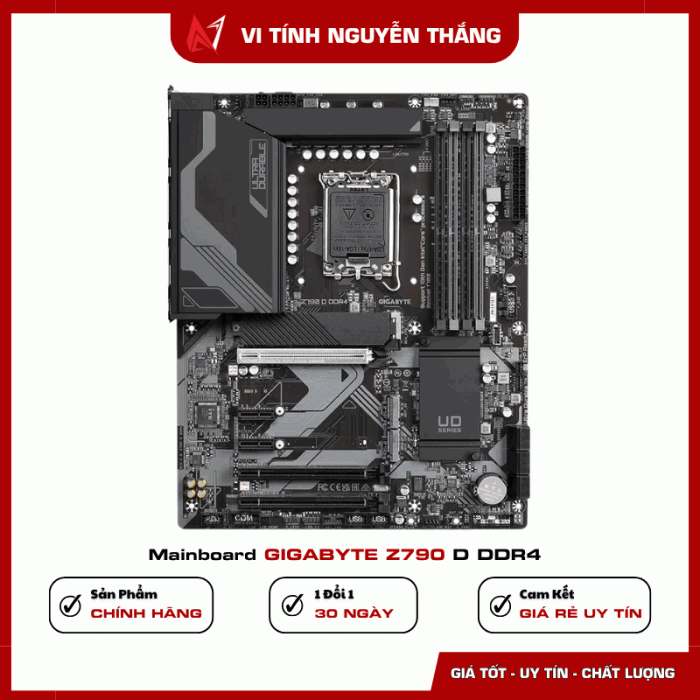 GIGABYTE Z790 D DDR4 là bo mạch chủ ATX mạnh mẽ thuộc phân khúc cao cấp, sử dụng chipset Intel Z790 mới nhất. Sản phẩm mang đến hiệu năng ổn định, khả năng mở rộng vượt trội và hỗ trợ tốt cho các CPU Intel đời 12, 13 và 14. Với thiết kế khoa học, nhiều tính năng hiện đại cùng mức giá tối ưu, đây là lựa chọn lý tưởng cho người dùng cần một nền tảng mạnh mẽ để build PC gaming, đồ họa hoặc workstation.