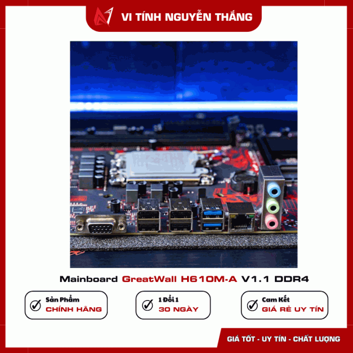 GreatWall H610M-A V1.1 cung cấp đầy đủ cổng USB, HDMI, VGA, LAN và audio, phù hợp cho PC học tập – văn phòng – giải trí. Dễ lắp đặt, dễ tương thích và hoạt động bền bỉ.