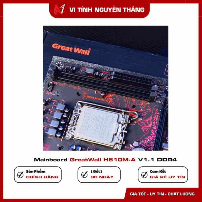 GreatWall H610M-A V1.1 sử dụng chipset Intel H610, đảm bảo khả năng vận hành mượt mà với các CPU từ Pentium cho đến Intel Core i5/i7 thế hệ mới. Điều này giúp người dùng dễ dàng build PC theo mức ngân sách mong muốn.