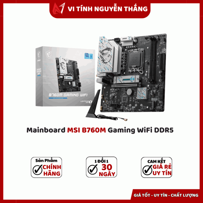 Mainboard MSI B760M Gaming WiFi DDR5 là lựa chọn hoàn hảo cho game thủ và người dùng đòi hỏi hiệu năng cao. Sở hữu chipset Intel B760 mới nhất, hỗ trợ RAM DDR5 tốc độ cao, cùng thiết kế tản nhiệt tối ưu và kết nối không dây WiFi 6, sản phẩm mang đến trải nghiệm chơi game mượt mà, xử lý đa nhiệm ấn tượng và khả năng nâng cấp linh hoạt trong tương lai.
