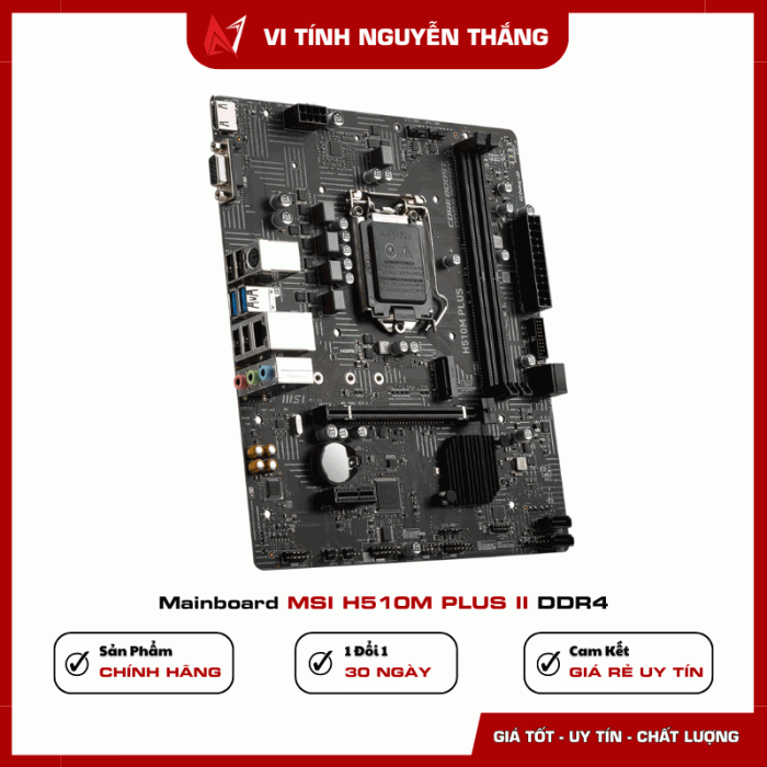 Với mức giá hợp lý, tính ổn định cao và khả năng tương thích rộng, Mainboard MSI H510M PLUS II DDR4 là lựa chọn hàng đầu cho] máy tính văn phòng, PC học sinh – sinh viên, máy chơi game phổ thông. Các bộ máy tiết kiệm nhưng vẫn cần độ bền và hiệu năng tốt.