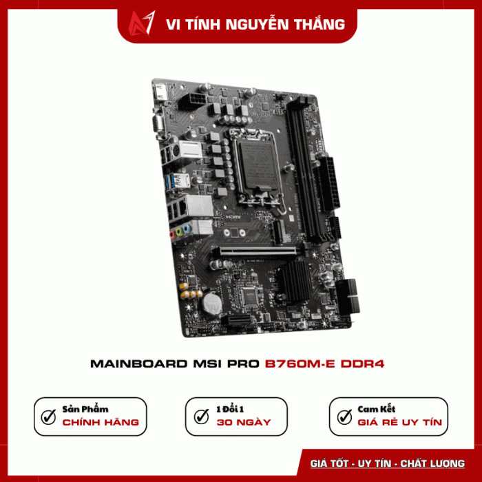 Mainboard MSI PRO B760M-E DDR4 là lựa chọn phù hợp cho người dùng cần một bo mạch chủ ổn định, giá hợp lý, dễ nâng cấp và tương thích tốt với CPU Intel thế hệ mới.