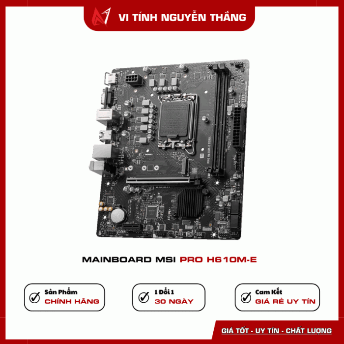 Mainboard MSI PRO H610M-E là lựa chọn lý tưởng cho người dùng cần một bo mạch chủ ổn định, dễ nâng cấp, tương thích CPU Intel thế hệ mới với mức giá hợp lý.