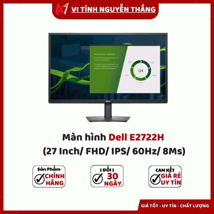 Dell E2722H là chiếc màn hình 27 inch thuộc dòng phổ thông, được Dell thiết kế cho nhu cầu làm việc văn phòng, học tập và giải trí cơ bản. Với độ phân giải Full HD (1920x1080), tấm nền IPS, cùng kích thước màn hình lớn, sản phẩm mang lại trải nghiệm hiển thị rõ nét, màu sắc trung thực và không gian làm việc thoải mái.