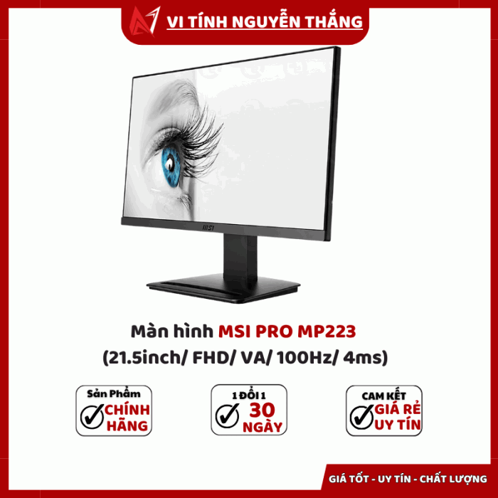 Màn hình MSI PRO MP223 là lựa chọn hoàn hảo cho người dùng cần một chiếc màn hình nhỏ gọn, giá hợp lý, hiển thị rõ nét và tiết kiệm điện. Với độ phân giải Full HD, tần số quét 100Hz và hỗ trợ Adaptive Sync, sản phẩm đáp ứng tốt nhu cầu làm việc, học tập và giải trí cơ bản.