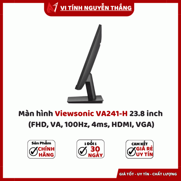Màn hình Viewsonic VA241-H 23.8 inch là lựa chọn lý tưởng cho người dùng đang tìm kiếm một màn hình đa năng – bền bỉ – giá tốt, đáp ứng cả nhu cầu làm việc, học tập lẫn giải trí. Với tấm nền VA cho màu sắc sâu và độ tương phản cao, cùng tần số quét 100Hz và thời gian phản hồi 4ms, sản phẩm mang lại trải nghiệm mượt mà và chân thực trong từng khung hình.