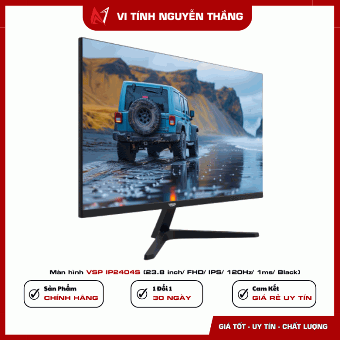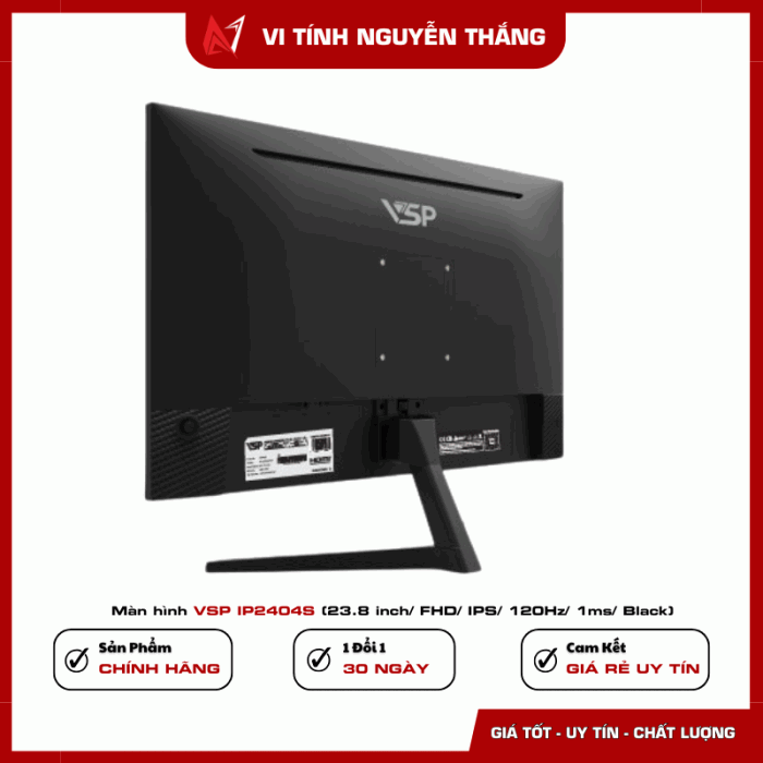 VSP IP2404S là mẫu màn hình 23.8 inch được thiết kế hướng đến người dùng cần sự cân bằng giữa hiển thị đẹp, chuyển động mượt và khả năng bảo vệ mắt. Sở hữu tấm nền IPS chất lượng cao từ BOE ADS, độ phủ màu rộng cùng tần số quét 120Hz, sản phẩm đáp ứng tốt nhu cầu làm việc, học tập và giải trí hằng ngày.