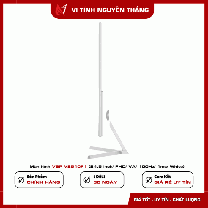 VSP V2510F1 là mẫu màn hình 24.5 inch hướng đến người dùng phổ thông cần một sản phẩm có thiết kế hiện đại, hiển thị rõ nét và mức giá hợp lý. Với tông màu trắng thanh lịch, màn hình không chỉ phù hợp cho góc học tập và làm việc mà còn đáp ứng tốt nhu cầu giải trí và chơi game nhẹ nhờ tần số quét cao và thời gian phản hồi nhanh.