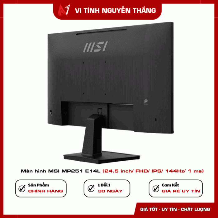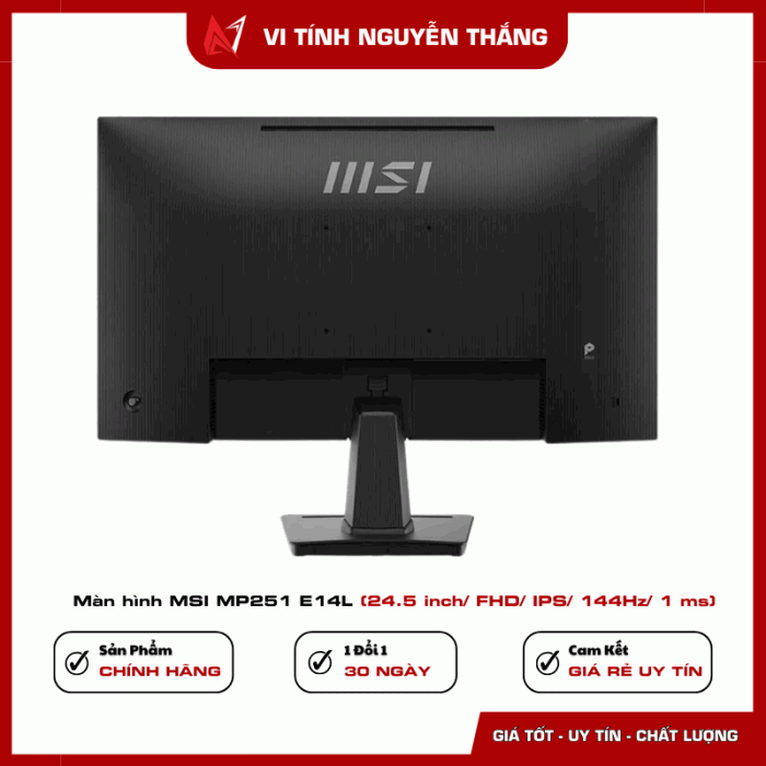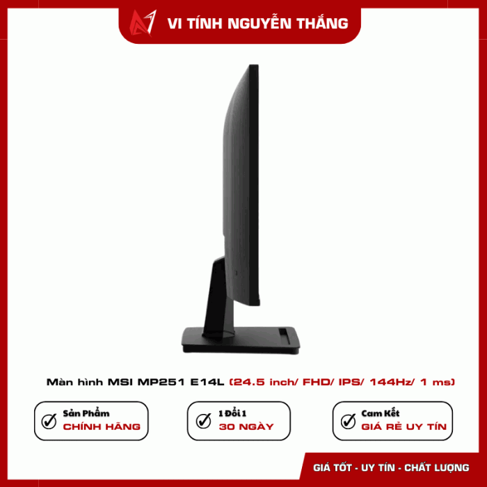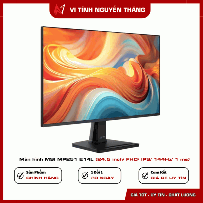 MSI MP251 E14L là màn hình 24.5 inch sở hữu sự cân bằng tốt giữa chất lượng hiển thị, hiệu năng và tính tiện dụng. Tấm nền IPS cho màu sắc chính xác, tần số quét 144Hz mang lại chuyển động mượt mà, trong khi các công nghệ bảo vệ mắt giúp người dùng làm việc thoải mái trong thời gian dài.