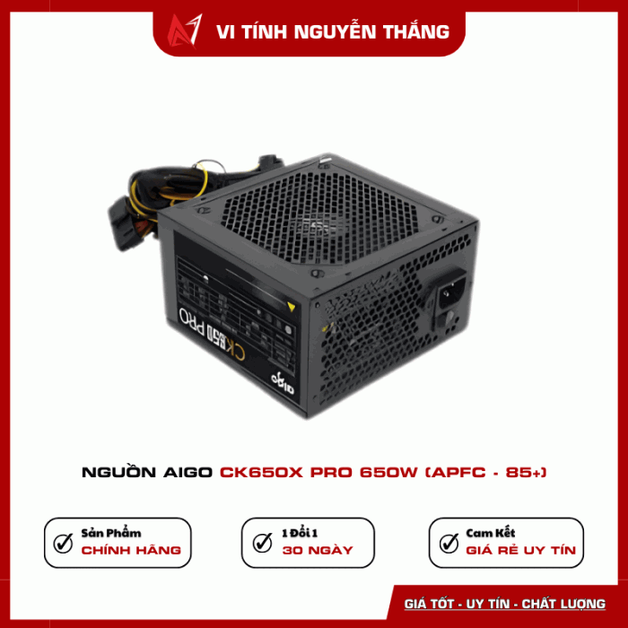 Nguồn AIGO CK650X Pro 650W APFC 85+ là lựa chọn lý tưởng cho người dùng đang tìm kiếm bộ nguồn chất lượng, hiệu suất cao và mức giá hợp lý cho PC gaming và làm việc.