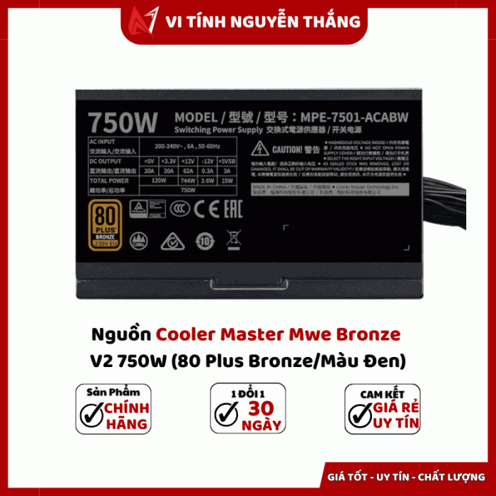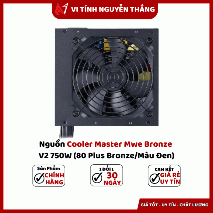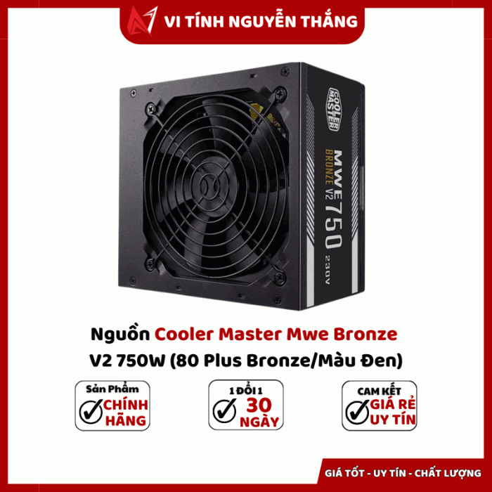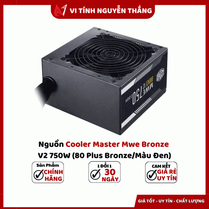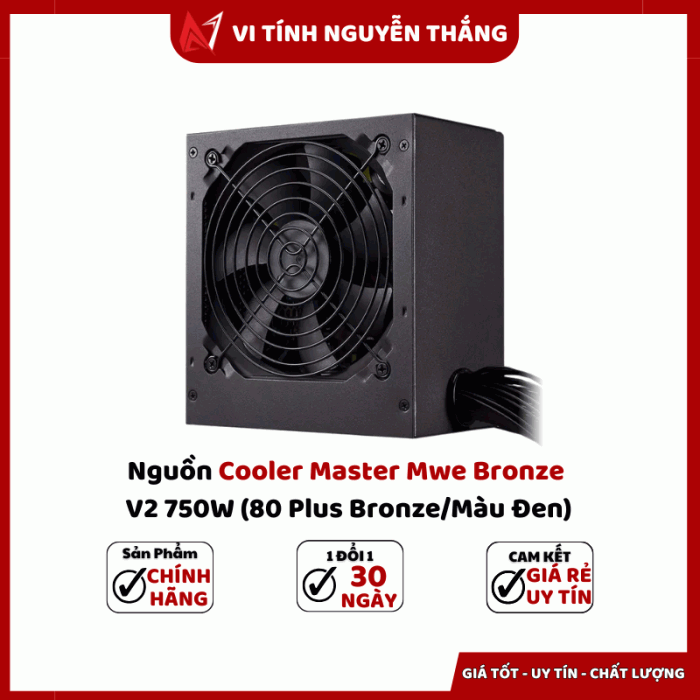 Nguồn máy tính Cooler Master MWE Bronze V2 750W thuộc dòng MWE Series nổi tiếng của Cooler Master thương hiệu toàn cầu chuyên sản xuất thiết bị tản nhiệt và linh kiện PC cao cấp. Với công suất thực 750W, đạt chứng nhận hiệu suất 80 Plus Bronze, sản phẩm mang đến nguồn điện ổn định, tiết kiệm năng lượng và hoạt động bền bỉ trong mọi điều kiện. Đây là lựa chọn lý tưởng cho game thủ, nhà thiết kế đồ họa và hệ thống PC hiệu năng cao.