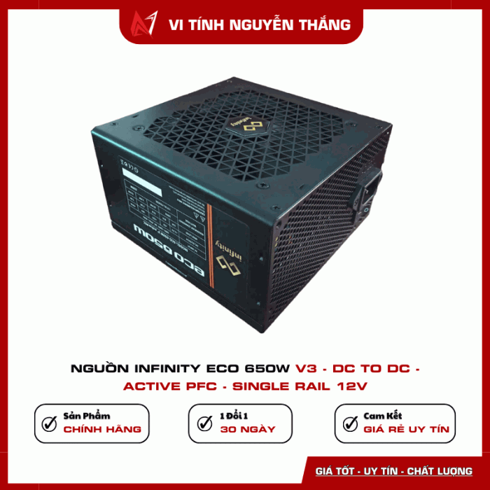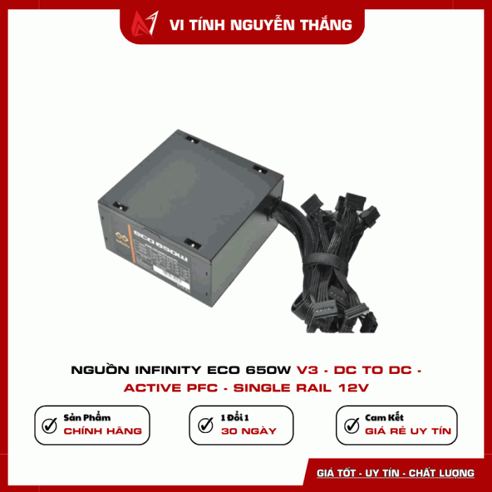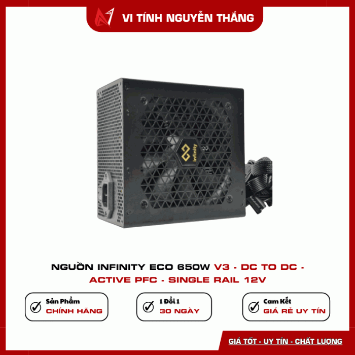 Nguồn Infinity ECO 650W V3 là lựa chọn lý tưởng cho những ai đang tìm kiếm một bộ nguồn ổn định, hiệu suất cao và mức giá hợp lý cho hệ thống PC hiện đại.