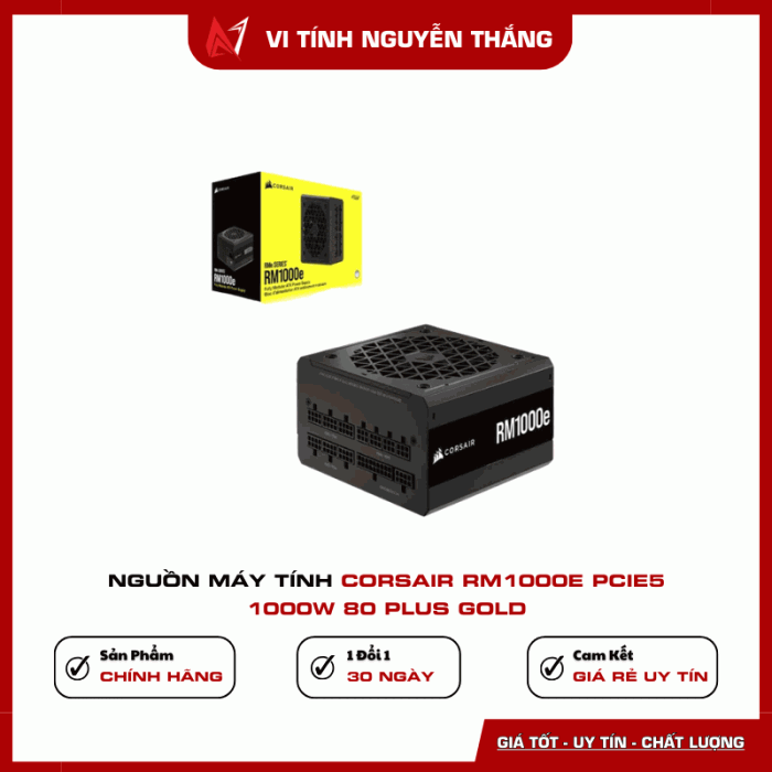 Nguồn Corsair RM1000e PCIe 5.0 1000W 80 Plus Gold là lựa chọn lý tưởng cho những ai đang tìm kiếm bộ nguồn cao cấp, hiệu suất ổn định, tương thích phần cứng thế hệ mới và độ bền vượt trội cho hệ thống PC hiện đại.