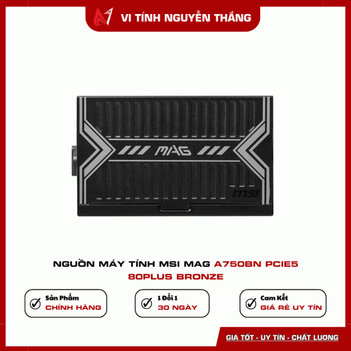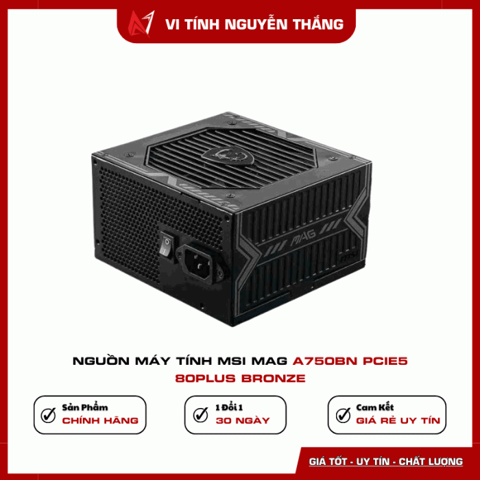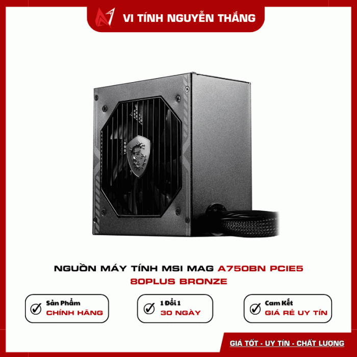 Nguồn MSI MAG A750BN PCIe 5 750W 80 Plus Bronze là lựa chọn lý tưởng cho game thủ và người dùng cần một bộ nguồn mạnh mẽ, ổn định và sẵn sàng cho phần cứng thế hệ mới.