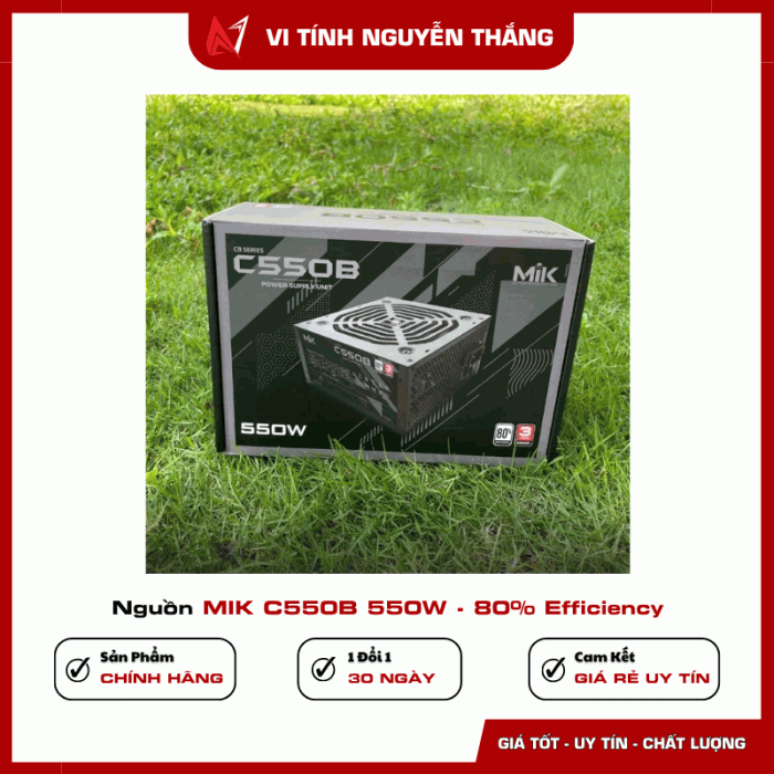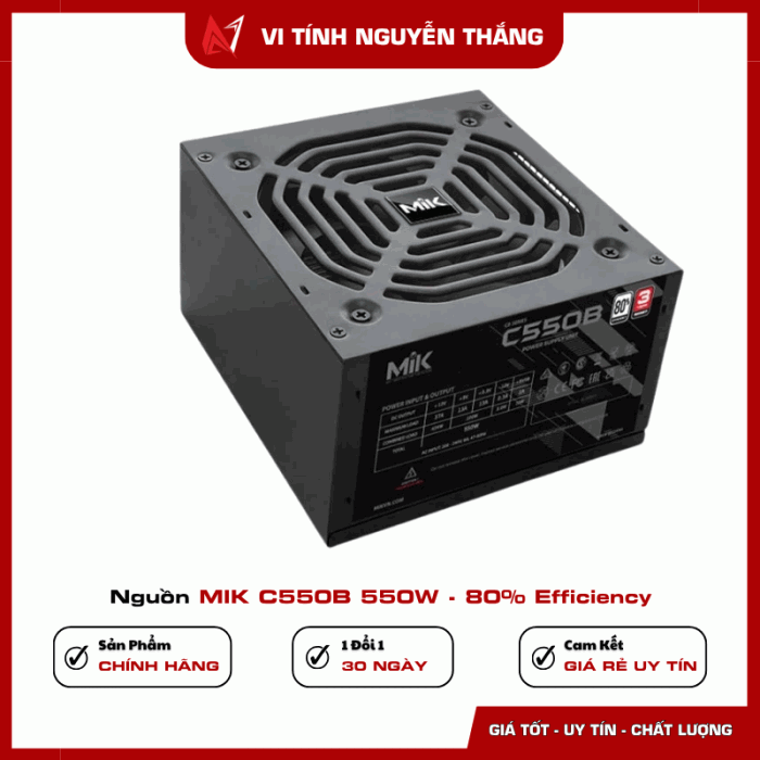 Nguồn MIK C550B 550W là lựa chọn hướng đến người dùng cần một bộ nguồn ổn định, chi phí hợp lý nhưng vẫn đảm bảo hiệu năng cho hệ thống. Với công suất 550W cùng mức hiệu suất đạt khoảng 80%, sản phẩm đáp ứng tốt nhu cầu vận hành của các cấu hình PC phổ thông đến tầm trung, bao gồm cả gaming nhẹ và làm việc hàng ngày.